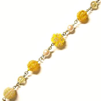春の訪れをつげるかのような明るい黄色ののガラスと象牙色のパールがヴィンテージ感を漂わせる、レトロなネックレス。身に着けるだけでゆったりとした時間を過ごせそうな、優しい雰囲気が魅力です。
