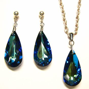 バミューダブルーの雫 スワロフスキーペンダントネックレス(Bermuda)シルバー
