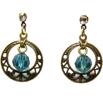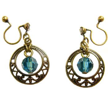 異国情緒漂うアンティークデザインが印象的な一点物のクリップ・イヤリング。海の蒼を彷彿とさせるスワロフスキーカットガラスが神秘的な光を放ちます。