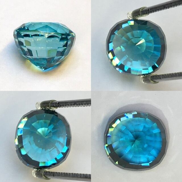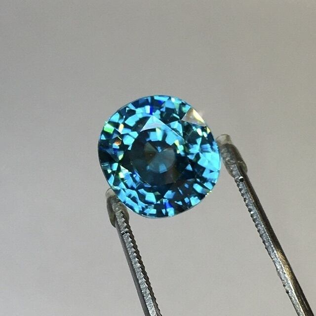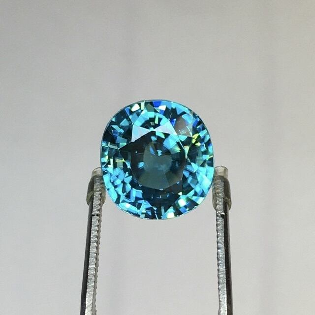 こちらはブルージルコンの中でも資産価値の非常に高い、濃厚なエナメルブルーで、輝きも申し分なく、ギラギラとした強く華やかな光を放ちます。